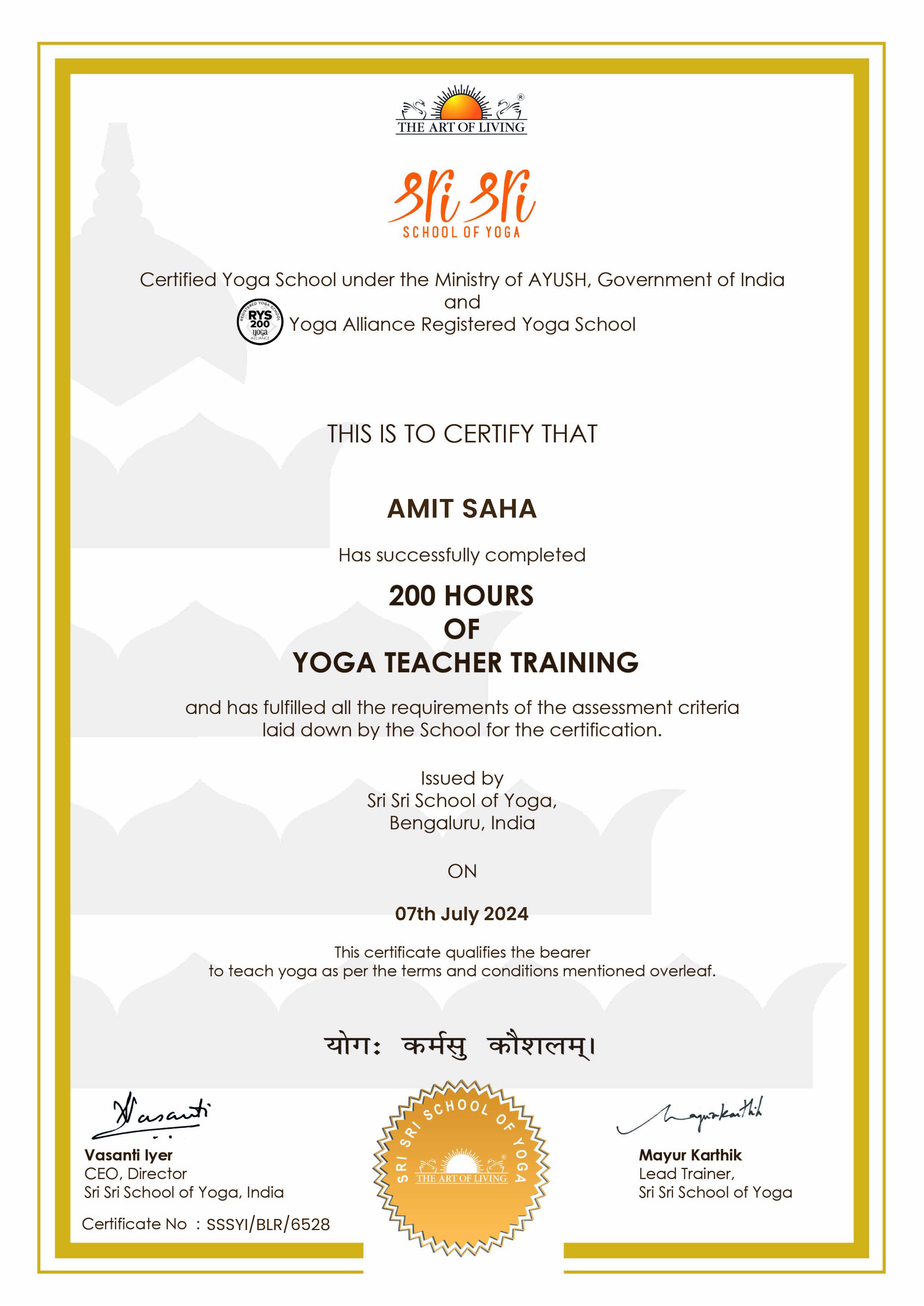 With a unique blend of technical expertise arrtnd spiritual insight, our instructor Mr. Amit Shaha brings a diverse background to the world of yoga. Certified by the esteemed Sri Sri School of Yoga i.e 200 Hours of Yoga Teacher Training, he has undergone rigorous training that encompasses various paths of yoga, including Hatha, Raja, and Bhakti yoga. His journey into yoga began over five years ago, driven by a desire for personal growth and a deeper understanding of the mind-body connection. Read More